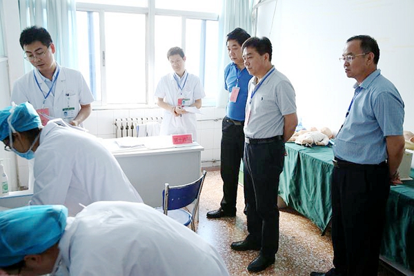 随后,校领导深入临床技能实训中心查看了学生客观结构化临床考试,并到学生教室、宿舍、学生食堂进行了实地查看,与实习学生进行了亲切交谈。
