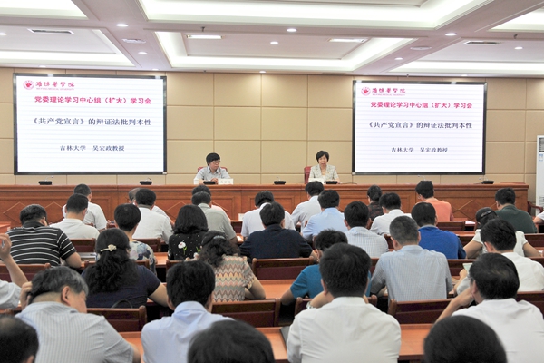 学习会上,吴宏政教授作了题为《〈共产党宣言〉的辩证法批判本性》辅导报告。报告从马克思对黑格尔辩证法的继承、《共产党宣言》的共产主义主题、《共产党宣言》中辩证法批判的基本内容等三个方面,全面解读了《共产党宣言》的历史地位和伟大意义,对广大党员干部进一步重温马克思主义经典著作,准确把握《共产党宣言》精神实质,坚定马克思主义信仰,真正做到学懂弄通、知信行统一具有重要指导作用。