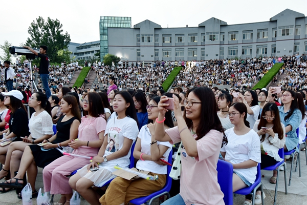 情系潍医,诉说临别前对母校无尽的祝福;相约未来,展望潍医学子辉煌的明天。7月3日晚,由校团委主办的“立志鸿鹄 逐梦远方”2018届毕业生晚会在浮烟山校区中和广场精彩上演。校领导管英俊、张潍华、孙宏伟、朱军、井西学、刘军、田艳玲,部门、院(系)负责人,团总支书记、学生辅导员及2018届全体毕业生3700多人,共同度过了这个充满着温情和感动、承载着欢笑与泪水的美好夜晚。