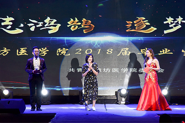 晚会期间还开展了对优秀毕业生樊姝彤、公共卫生与管理学院优秀宿舍以及西部计划志愿者的访谈,穿插播放了同学们精心制作的老师寄语、毕业生留言视频,谆谆的教诲、奋进的感言、青春的脸庞、定格的瞬间让同学们潸然泪下。立志鸿鹄逐梦远方,潍医将与毕业学子携手向前,怀梦想、致远方、共创辉煌。