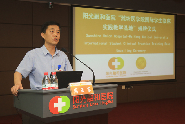 周玉东在致辞中介绍了阳光融和医院的基本情况、JCI国际认证和发展规划,医院结合国际留学生实习需求,完善了相关教研机构,遴选了64名带教师资,对留学生实习一对一带教,确保高质量的实习效果。