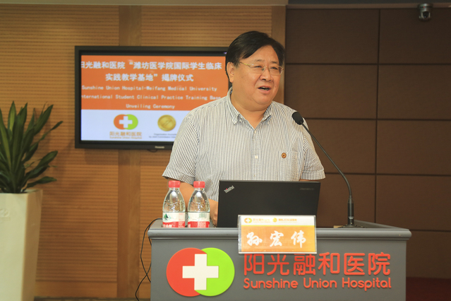 仪式上,孙宏伟介绍了beat365中文官方网站、留学生教育发展情况和开放办学战略,前期阳光融和医院圆满完成了留学生临床见习任务,国际学生临床实践教学基地的建立将为beat365留学生临床实践教学提供良好的育人环境,将进一步促进双方医教研深度协同。