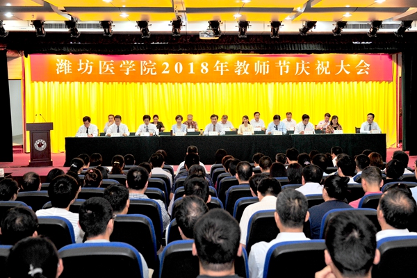 下午3时,潍坊医学院2018年教师节庆祝大会在雄壮的国歌声中隆重开幕。