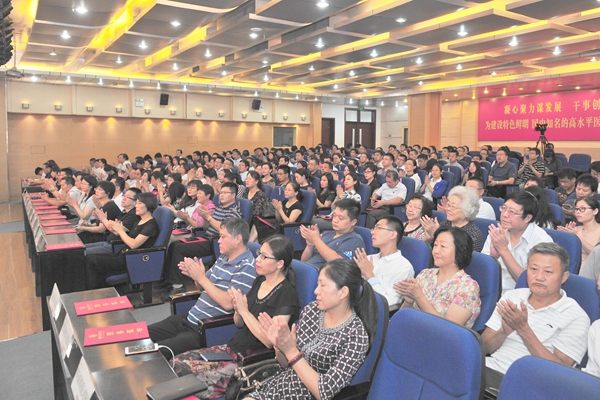 管英俊强调,“兴学之本,惟有师范”。培养一流人才,建设一流本科教育,创建高水平医科大学,最关键的是要有一支高素质专业化的新时代教师队伍。她说,习近平总书记在今天全国教育大会提出,“教师是人类灵魂的工程师,是人类文明的传承者,承载着传播知识、传播思想、传播真理,塑造灵魂、塑造生命、塑造新人的时代重任。”面对新时代党和国家的新要求,人民群众的新期盼,她希望全体教师要做到:一是忠诚教育事业,担当育人使命。希望老师们回归初心与梦想,牢固树立人才培养中心地位,秉承爱岗敬业、厚德载物的职业操守,坚持与时俱进、锐意创新的可贵品质,践行甘为人梯、无私奉献的崇高理想,倾心培育德才兼备的有为人才。二是致力素质提升,彰显育人价值。希望老师们回归常识,尊重高等教育规律,遵循人才成长规律,围绕学生刻苦读书办教育、做学问、求创新,做学生的良师益友,做教育教学改革和创新人才培养的中流砥柱,切实把内涵建设、质量提升体现在每一个学生的学习成果上。三是铸就高尚师德,回归育人本色。希望老师们回归本分,坚守精神家园,以德立身、以德立学、以德施教,用“学高为师”引领潍医文化,用“德高为范”传承潍医精神,使学生“安其学而亲其师,乐其友而信其道”,把立德树人的成效作为检验一切工作的根本标准,做党和人民满意的“四有”好老师。