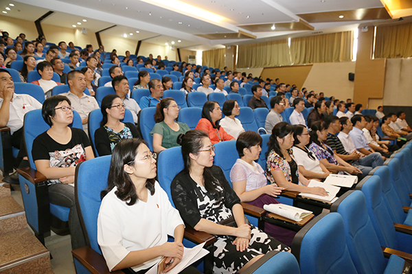为深入学习贯彻党的十九大精神,丰富拓展主题党日活动形式,更好地引导广大党员干部和青年学生增强党性修养,坚定理想信念,9月12日下午,学校在办公楼一楼报告厅组织党员干部观看主题电影《党员登记表》。校领导张潍华、朱军、田艳玲,机关党委、总务基建党总支、教务学工党总支、马克思主义学院党总支等党员干部、学生代表200余人观看。