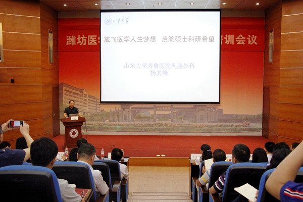 孟庆跃教授作了题为《做研究生导师的几点体会》的报告。孟教授结合自己多年来指导研究生的亲身经历,就如何履行导师职责,做好研究生培养工作谈了自己的体会。杨其峰教授以《放飞医学人生梦想 启航硕士科研希望》为题,报告了作为研究生导师如何帮助研究生树立人生梦想,如何通过文献学习、团队建设、科研实践、关爱引领和顽强的毅力,助力研究生梦想腾飞。