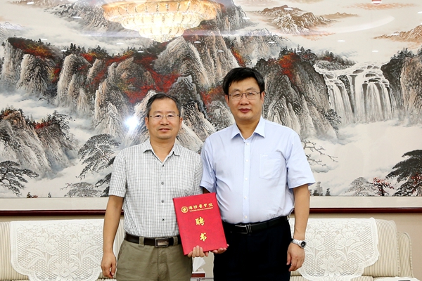 9月15日,由山东省科协、山东省教育厅、山东省科技厅、山东省卫计委主办,beat365承办的第三十八期山东科学大讲堂在办公楼四楼西会议室举行。会前,副校长刘军接见了陈西广教授并进行座谈,党委办公室(院长办公室)、人事处、科研处、药学院负责人及教师代表参加座谈。刘军为陈西广教授颁发了客座教授聘书。