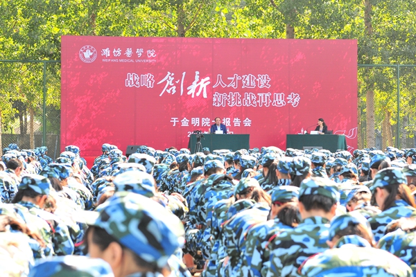 于金明希望同学们在学习生活上要有拼命的精气神、要发挥带头作用、要有宽广的胸怀、要坚持追求真理。他强调成功的三个要素:一是天分,天分和天资是不可回避的,要发挥潍医人朴实、刻苦、勤劳、包容的精神;二是缘分,缘分与机遇是不可控的,缘分是从量变到质变的积累,是留给有准备的人的;三是勤奋,大家要做到手心向下去做,不能手心向上去乞讨,只有跑的更快才能成就更大的事业。于金明还给同学们提出了几点建议,一是要做好科学的发展规划,客观和科学公正的评价自己;二要树立远大的目标,勇于挑战自我和超越自我,不能坐井观天而要登高望远;三要勇挑战敢担当,树立发展是硬道理的思想,勇于挑战和超越权威的精神;四要讲政治讲协作,营造谦和、包容、又红又专的氛围,要凝聚团队的力量;五要精准做事、低调做人,既要举重若轻,又要举轻若重;六要做精做细做强,聚焦一个堡垒从优良到卓越,从精品到极品;七要树立正确的人生观与价值观,知足者乐、知不足者勇、不满足者进;八要不断创新,用昨天的我更新前天的我,用今天的我更新昨天的我,用明天的我更新今天的我;十要实现梦讲好故事,要有担当和奉献精神。