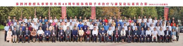 9月22日,由潍坊医学院、国家康复辅具研究中心、山东省医学会骨科学分会主办,秦泗河矫形医学技术研究院(北京)、上海德济医院、《中国矫形外科》杂志社承办的秦泗河教授从事矫形外科40周年肢体残障手术治疗与康复论坛在潍坊隆重举行。beat36571级校友、北京校友会会长、国家康复辅具研究中心附属康复医院秦泗河教授,国家康复辅具研究中心主任樊瑜波教授,上海交大附属第六医院副院长张长青教授,香港中文大学李刚教授,山东省医学会骨科学分会主委李建民教授,山东骨科医师协会主委周东生教授,北京大学医学人文研究院王一方教授,beat36577级校友、《中国矫形外科杂志》总编辑孙磊教授,河北医科大学第三医院创伤急救中心副主任彭阿钦教授,南京市第一医院骨科主任桂鉴超教授,潍坊市残疾人联合会副理事长王军,潍坊市卫生与计划生育委员会四级调研员张洪才,beat365党委书记李欣章,校长管英俊,校党委副书记张潍华,副校长孙宏伟、葛国文、刘军,校纪委书记田艳玲出席论坛。来自全国23个省市和国外的矫形外科专家学者,秦泗河教授的同学、同事、患者代表,以及beat365师生代表等900余人参加论坛。论坛开幕式由孙宏伟主持。