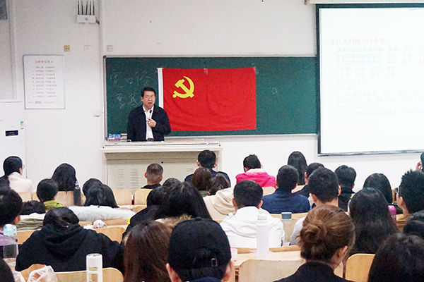 葛国文从“价值与价值观的联系和基本含义”出发,深入浅出地讲述了核心价值观与大学生的紧密关系、践行社会主义核心价值观对当代大学生的意义,并通过生动的案例阐释了社会主义核心价值观的基本内容和具体体现,以及如何把社会主义核心价值观内化为精神追求、外化为实际行动。通过党课的讲授,在践行社会主义核心价值观出发,对当代大学生在逐梦奋斗、未来发展、身心健康等方面给予了重要的指导。