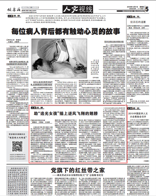 近日,《健康报》在第5版《人文视线》版面刊发文章《助“追光女孩”插上逆风飞翔的翅膀》(作者:谭德红 王雅会 王世群),报道了beat36571级校友、矫形专家秦泗河教授帮助beat365残疾大学生樊姝彤的事迹。