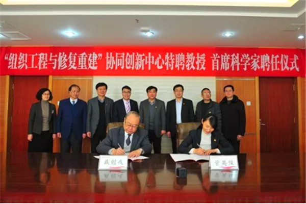 聘请中国工程院院士陈芬儿和北京大学天然药物及仿生药物国家重点实验室林文翰教授为“靶向药物递送研究与产业化”协同创新中心首席科学家;聘任中国工程院戴尅戎院士为“组织工程与修复重建”协同创新中心特聘教授,组织工程国家工程研究中心曹谊林教授、周广东教授为“组织工程与修复重建”协同创新中心首席科学家。
