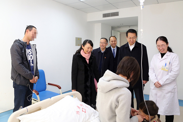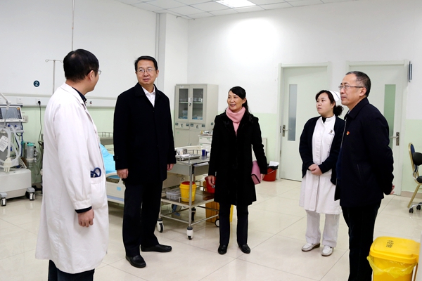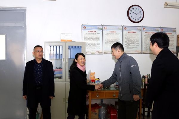 2月4日农历除夕上午,新春佳节来临之时,校领导管英俊、朱军、葛国文带领有关部门负责同志,分别到浮烟山校区、虞河校区和附属医院浮烟山院区看望慰问春节期间坚守在岗位上的一线教职医务员工及就医患者,代表学校送去新春祝福。