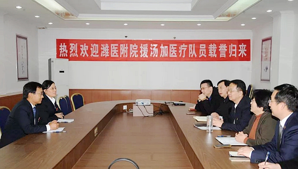 会上,葛国文首先代表学校和医院向两位援汤加医疗队员的顺利归来表示欢迎,向他们介绍了援汤期间医院的发展情况和取得的成绩;对他们积极参加援外工作给予了充分肯定和表扬,并仔细询问了援外期间的工作和生活情况,鼓励他们下一步结合自身援外经历开展工作,把援外经验运用到医疗、教学、科研等方面工作中,不断提升科室业务水平。