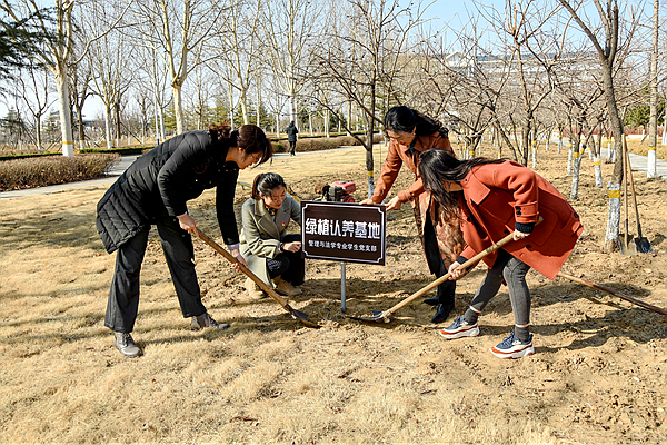 3月11日,公共卫生与管理学院管理与法学专业学生党支部于浮烟山校区致远路旁开展绿地认养主题党日活动。