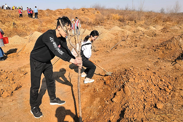 同学们学习了关于幼苗种植和树林维护的相关知识点,了解了封山育林和森林防灾减灾的重要性。活动中,同学们手持铁锨和水桶,分工明确,干劲十足,同学表示要在十年后回来摸一摸亲手种的树苗,看一看绿水青山。