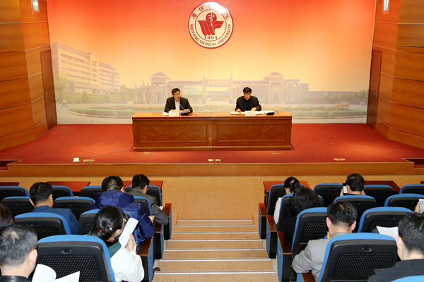 3月26日下午,学校在办公楼一楼报告厅召开2019年硕士研究生招生复试学位点负责人工作会议。副校长刘军出席会议并讲话,各院系负责人、学位点负责人、学科秘书参加会议。