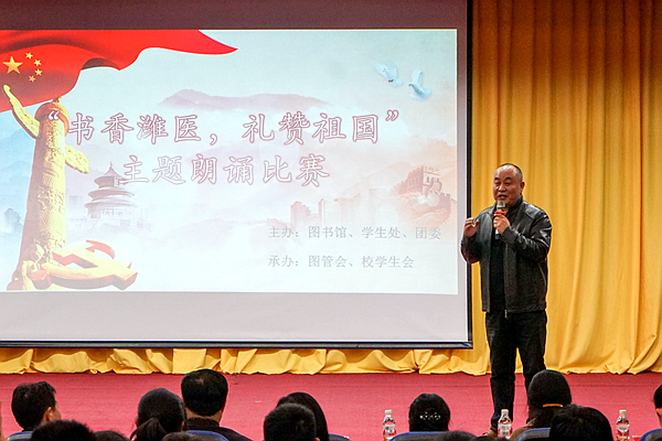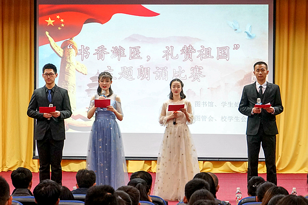 3月30日晚,由图书馆、学生处、团委主办,图书馆学生管理委员会和学校学生会承办的“书香潍医,礼赞祖国”主题朗诵比赛在图书馆演播厅顺利举行。本次活动拉开了beat365第八届读书月活动的序幕。宣传部、学生处、校团委、图书馆、马克思主义学院、临床医学院、外语学系、心理学系等部门院系和有关科室负责人担任大赛评委,学校人文艺术教育中心负责人到现场进行指导。