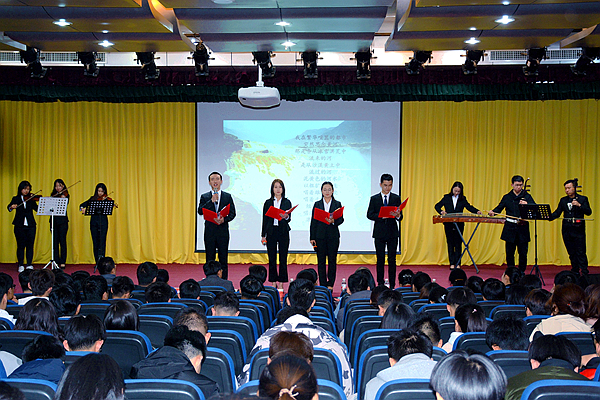 来自全校各院系的77组选手200余名学生参加了初赛,15组选手入围决赛。比赛现场,选手们精神饱满、满怀深情地回顾了新中国走过的70年峥嵘岁月,讴歌了改革开放40周年取得的伟大成就,畅想了新时代的强国梦想。《透过历史的眼眸》让我们深刻领会了中华人民共和国成立初期的正道沧桑,不同时期的年代记忆;《父母之河》深情表达了祖国母亲的哺育之恩和博大胸怀;《时间的入口》用辩证的思维激励我们“击鼓催征稳舟驭,不负韶华惜当下”;《拼搏铸就辉煌》阐述了青年一代的理想与担当,以及新时代赋予我们的历史使命;《医赞祖国》宣誓了医学生恪守医德、救死扶伤的神圣使命。选手们的表现精彩不断,亮点纷呈,赢得了评委老师们的一致好评和观众的阵阵掌声。朗诵结束后,beat365人文艺术教育中心副主任、潍坊市朗诵与语言艺术协会会长马永安从参赛作品的内容设计、舞台表现效果和朗诵技能等方面对本次大赛进行了点评。根据选手们的综合表现,最终评出了本次比赛的一二三等奖。