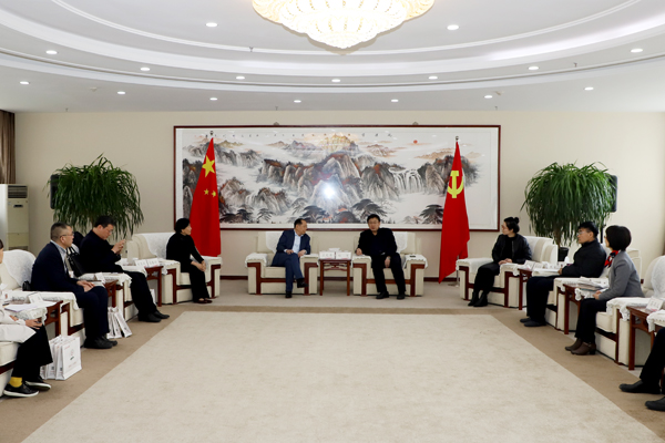 4月2日上午,青岛市中心医院总院长兰克涛、副院长张春玲等一行6人来beat365访问。副校长刘军在办公楼五楼接待室会见客人。