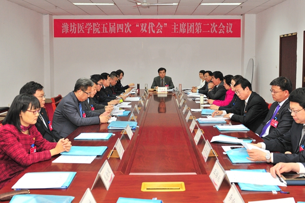 主席团成员举手表决通过了关于校长工作报告的决议、关于学校财务工作报告的决议、关于《潍坊医学院章程(修正案)》的决议、关于《潍坊医学院绩效工资分配实施意见(试行)》的决议、关于工会工作报告的决议、关于工会经费预决算和经费审查工作报告的决议。
