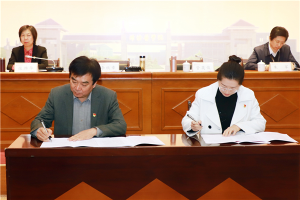 李欣章与党总支(党委)书记代表分别签订了《党建工作目标管理责任书》《意识形态工作责任书》《党风廉政建设责任书》。山东省党建工作标杆院系培育建设单位、马克思主义学院党总支书记程乐森、生物科学与技术学院党总支书记李向辉、全国党建工作样板支部培育建设单位、护理学院教师党支部书记孟庆慧分别作了交流发言。