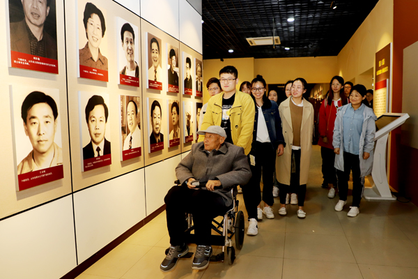 “我是红色基因的义务宣传员。”一上课,92岁的老党员、学校离休干部马枕戈教授就风趣地向同学们介绍自己。4月16日下午2点,大学生们正在校史馆认真聆听马教授讲革命故事和学校发展历史。