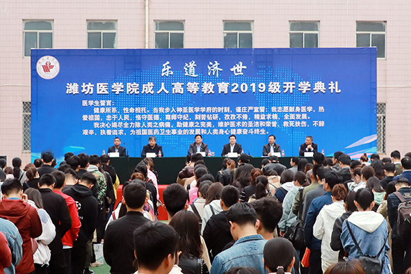 孙宏伟代表学校对2019级新生表示热烈祝贺与欢迎,他指出,参加成人高等教育学习是人生旅途的一个重要转折点,潍坊医学院将成为学生们的梦想加油站,崭新的人生旅程将在潍医正式启航。学校成人高等教育始于1960年,近60年来,成人高等教育事业不断发展壮大,已形成专升本、高起本和高起专三个培养层次,涵盖临床医学、护理学、麻醉学、口腔医学等10多个专业,建立起业余函授学习相结合的成人高等教育办学体系。2010年,学校成人高等教育护理学(本、专科)专业被评定为山东省成人高等教育品牌专业。2012年,学校被确定为护理学专业专科在校生自学考试本科段主考院校。