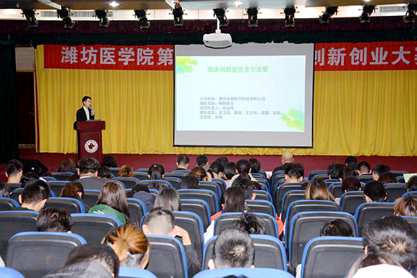 4月26日,由学生工作处(大学生就业指导中心、武装部)、团委主办的潍坊医学院第五届“互联网+”大学生创新创业大赛决赛于图书馆演播厅成功举办,副校长朱军莅临比赛现场。
