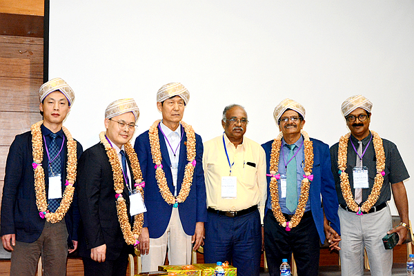 第二天学术报告会现场,该医院院长及当地骨科专家举行了隆重的欢迎仪式,请秦泗河教授点燃“智慧灯”,象征着将知识和大爱撒满人间。秦泗河教授用手术视频、患者治疗前后形态与功能对比,展示了秦泗河矫形团队践行的肢体自然重建理念,以及“一路、两线、三平衡”下肢重建外科原则。通过独特的手术风格,向印度骨科学界展现了一个具有中国特色的下肢矫形外科技术体系。当地骨科学会主席亲自为远道而来的中国骨科专家“加冕”,很多医生则纷纷提出了到北京跟秦泗河教授进修的申请。课程中间秦泗河教授特意为会场献上一首竹笛独奏《天下一家》。