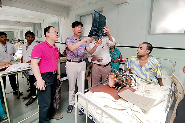 这个医院曾邀请世界各国最著名的医学家来医院义诊及手术治疗,他们不但带来了世界上最顶尖的技术,同时也带来了最新的医疗设备及各种一次性耗材无偿捐赠给医院。秦泗河教授当即表示以后他会定期到这个医院为病人免费诊疗,并且会将中国产的Ilizarov和组合式外固定捐赠给医院。