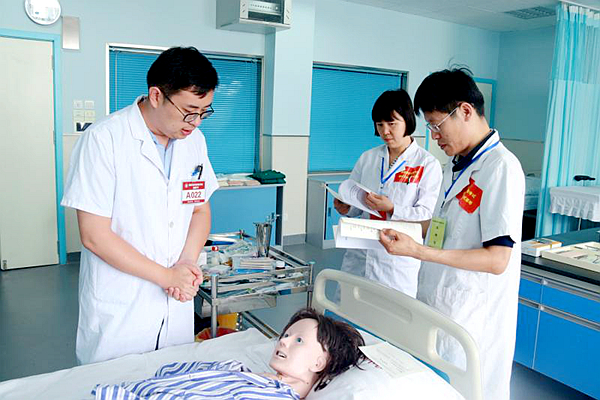 6月15日至20日,2019年国家医师资格实践技能考试(潍坊地区)在beat365举行。beat365作为山东考区潍坊考试基地,承担了2665名临床类别、1288名乡村全科,共计3953名考生的实践技能考试任务。