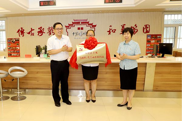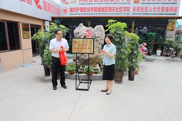 为认真贯彻落实省市工作要求,深化学校党组织、在职党员社区报到服务工作,在前期工作对接、制定资源、需求和项目三张清单和学校“七进一共建”社区报到方案的基础上,6月28日下午,党委副书记张潍华一行到潍城区城关街道十笏园社区和西关街道月河社区协调“双报到”服务项目开展工作,并与潍城区委副书记李全吉一起为“潍坊医学院党组织、党员社区报到站”揭牌。