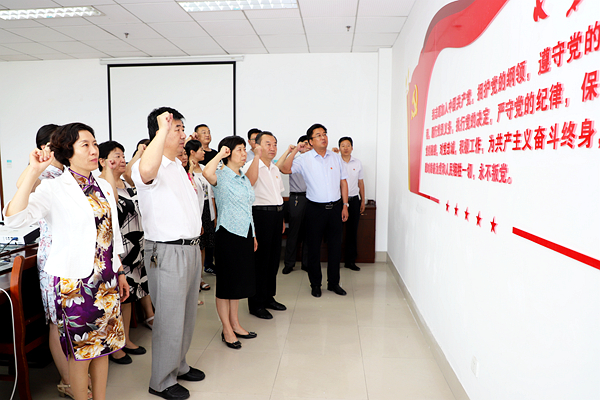 “我宣誓:我志愿加入中国共产党,拥护党的纲领,遵守党的章程……”在党支部书记王世群的领誓下,伴随高亢有力的声音,支部党员同志再次重温了入党誓词,庄严的宣誓仪式使党员们的心灵受到了一次震撼和洗礼。