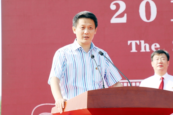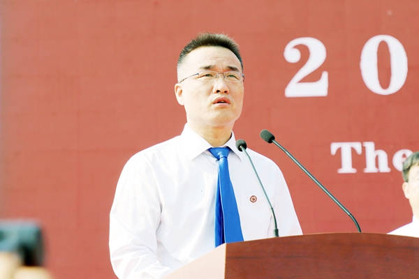 教师代表张宝刚教授发言。他希望毕业生们心存信仰,坚定理想;勤奋学习、求实创新;心系母校、常回家看看。要学会在变革的交织和激荡中思考,历练和完善自我,成就自己的人生梦想。