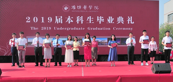 典礼前,全体师生、家长代表通过视频《不说再见》,共同回顾了2019届本科毕业生青春成长的潍医芳华。辅导员们的深情朗诵《在最美的年华遇见你》,表达了学校对毕业学子的依依不舍和美好寄望。
