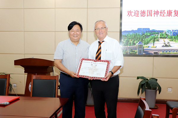 7月9日下午,学校举行特聘教授聘任仪式,德国神经康复协会主席Thomas Mokrusch教授受聘beat365特聘教授。副院长孙宏伟为Thomas Mokrusch颁发聘书。