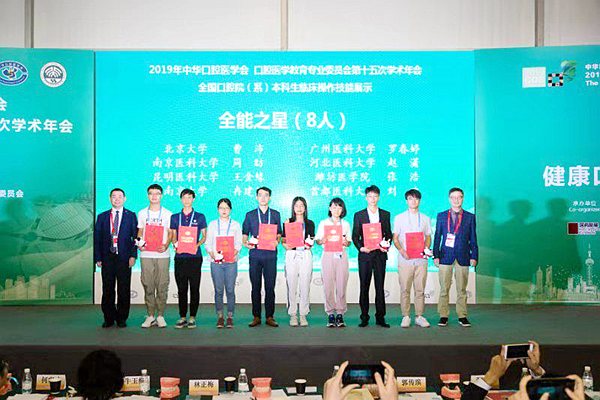 8月28日,由中华口腔医学会口腔医学教育专业委员会承办的“2019年全国口腔院(系)本科生临床操作技能展示”在上海拉开帷幕。本次大赛共吸引了全国56所本科院校同台竞技,大赛包括牙体、外科、修复三项技能操作,每项的操作时间均为20分钟,口腔医学教育专委会组织专家评委对操作技能展示现场及模型进行评选,由专家评委和机器扫描共同进行评定。经过激烈角逐,beat365口腔医学专业张浩同学脱颖而出,以全国第七名的成绩荣获“全能之星”称号,实现了学校在全国口腔医学技能大赛新的突破。口腔医学院院长胡温庭及指导老师带领学生参加了本次大赛。