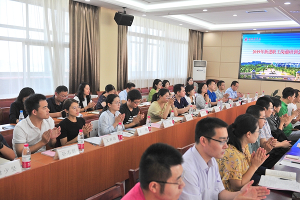 9月9日上午,学校在办公楼四楼西会议室举行2019年新进职工岗前培训开班仪式,院长管英俊到会并讲话,副院长刘军主持会议,有关部门、院(系)负责人、全体新进职工参加会议。