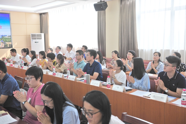 管英俊代表学校向新进职工的加入表示热烈欢迎。她结合学校发展介绍了学校的基本情况,强调了人才对学校发展的重要性,鼓励青年人才脱颖而出,并对新进职工提出了殷切希望:一是为人师表,师德为先,做一名政治素质过硬的好教师;二是潜心育人,回归本分,做一名育人水平高超的好教师;三是追求卓越,开拓创新,做一名业务精湛的好教师;四是实干担当,爱校荣校,做一名敬业奉献的好教师。