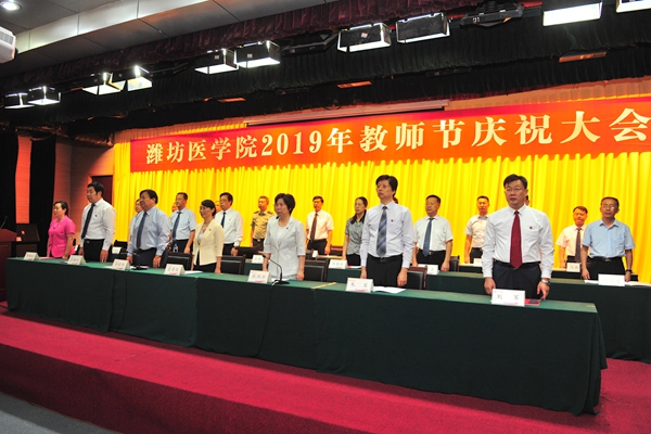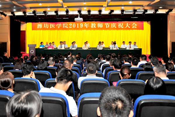 砥砺前行守初心,勇担使命写荣光。9月10日下午,学校在浮烟山校区图书馆演播厅隆重举行第35个教师节庆祝大会。党委副书记、院长管英俊,党委副书记张潍华,副院长孙宏伟、朱军、井西学、刘军,纪委书记、山东省监察委员会驻潍坊医学院监察专员田艳玲,以及各附属(教学)医院负责人、教师代表在主席台就座。会议由张潍华主持。
