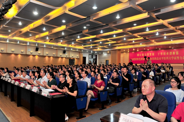 管英俊说,教师是立教之本、兴校之源。过去的一学年,全体教职医务员工携手同心,攻坚克难,学校各项事业实现新突破。过去的一学年,老师们爱岗敬业、追求卓越、无私奉献,在各个岗位上取得了骄人的成绩,为学校赢得了荣光。她表示,教育是民族振兴、社会进步的重要基石,是国之大计、党之大计。中国特色社会主义进入新时代,每位教育工作者共同面临一个新的命题:身为新时代的教师,我们的时代重任是什么?在全国教育大会上,习近平总书记已经给出答案:“教师是人类灵魂的工程师,是人类文明的传承者,承载着传播知识、传播思想、传播真理,塑造灵魂、塑造生命、塑造新人的时代重任。”在今年全国学校思想政治理论课教师座谈会上,习近平总书记要求思政课教师“政治要强、情怀要深、思维要新、视野要广、自律要严、人格要正”。这些重要论述体现了以习近平同志为核心的党中央对教师的高度重视,为新时代加强教师队伍建设指明了努力方向,是广大教师落实好立德树人根本任务的思想标杆和行动遵循。