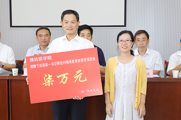 9月9日,滨州沾化下洼镇,秋风递幽香,冬枣缀枝头。副院长井西学一行,来到学校省派第四轮“第一书记”所在地调研考察,并代表学校捐赠给下洼镇价值167万元的教学仪器设备和7万元的精准教育扶贫专项资金。