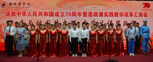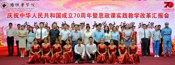 思政课实践教学改革汇报会,是beat365青年学子为喜迎新中国70周年华诞,向祖国告白、献礼国庆的隆重汇报,是beat365师生深化习近平新时代中国特色社会主义思想学习的成果汇报,也是近年来beat365思政课实践教学改革探索与实践成果的集中展示,也是beat365新生入学以来倾听的首堂思想政治理论课。此次汇报会为激励新时代潍医学子投身祖国医疗卫生事业贡献青春和力量搭建了传播平台。