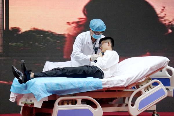 本次思政课实践教学改革汇报会是马克思主义学院精选了开展的丰富多彩的实践教学活动中8个精彩节目组成的。演出现场气氛热烈,演员们声情并茂的表演赢得现场师生的热烈掌声。汇报会由心理学系推荐的《我们青年有力量》开场,表达了“青年强则国家强、新时代有新青年”的浓烈爱国情怀。护理学院的《致敬英雄,烈火中定格的青春》讲述了消防英雄爱国无悔的感人故事,告诉当代大学生要做时代的守护者,青春无悔。临床医学院的《征途》、医学影像学系的《大医精诚》引领观众重温了无数医学仁人志士用生命写就的不朽从医之路。外语系张斌全同学讲述的《关于爱国,新时代大学生有话说》表达了新时代大学生“育爱国之情,立报国之志,成建国之才,作效国之行”的决心。临床医学院和外语系的同学共同带来《魂兮归来》,由beat365马永安老师根据真实事件创作,讲述了潍坊寿光牛头镇抗日武装起义中牺牲的八路军烈士张立训(张圣符)72年漫漫回家路的感人事迹。公共卫生与管理学院的《张富清》向我们讲述了老英雄张富清60多年深藏功名,一辈子坚守初心、不改本色的感人事迹。最后,伴随着在场师生齐唱《歌唱祖国》,演员和观众情感融合,汇报会达到高潮,圆满落幕。