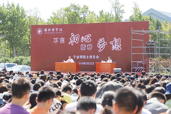 管英俊在总结讲话中指出,于金明院士传承潍医求学期间坚毅、刻苦、勤劳、感恩、向上、向善的精神,坚守做一名战士、斗士、卫士、勇士,让我们深刻地感受到了医学大家的风范和战略科学家的气魄。他始终坚守梦想的初心、奋斗的信心和矢志不渝、勇攀高峰的恒心,把个人梦融入实现“健康中国”的“医学梦”“中国梦”之中,给我们以心灵的震撼和思想的启迪,为我们在做人、做事、做学问的道路上指明了方向,提供了宝贵经验。管英俊希望,大家作为新时代的潍医人,站在时代的新坐标上,继承和发扬“自强不息、锐意进取”的潍医精神,切实肩负起新时代青年人的责任和担当,不忘初心,播种梦想,无问西东,踏着前辈的足迹奋勇前进,为建设特色鲜明、国内知名的高水平医科大学做出新贡献,为国家强盛、民族进步注入新活力,以优异成绩庆祝新中国成立70周年!