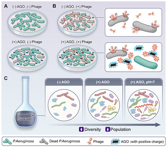 氨基化氧化石墨烯(AGO)影响细菌/噬菌体互作示意图
