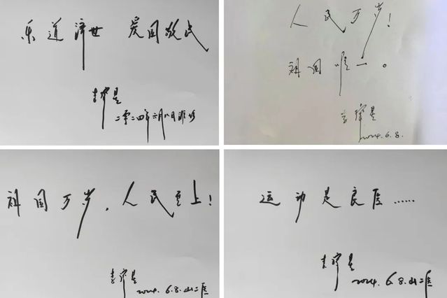 每到一处,每到一处,李肇星同师生亲切交流,细心询问同学们专业学习、体育锻炼、课外阅读等情况,提醒同学们守纪律、明底线,鼓励同学们养成终身学习、终身锻炼的优良习惯。李肇星、秦小梅为学校题词:“乐道济世、爱国敬民”“祖国万岁,人民至上”“人民万岁,祖国唯一”“运动是良医”。