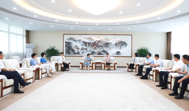 7月25日,潍坊市副市长、市工商联主席陈端梅一行来校考察调研。潍坊市政府副秘书长王霞;潍坊市教育局党组书记、局长,市委教育工委常务副书记王霞等陪同调研。学校校长管英俊会见客人并座谈,副校长卢国华参加活动。
