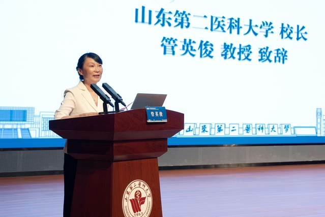 管英俊在欢迎辞中代表学校向本次会议的举办表示祝贺,对各位专家和麻醉同仁表示欢迎,并简要介绍了学校办学历史和发展近况。她表示,党的二十届三中全会提出“高质量发展是全面建设社会主义现代化国家的首要任务”,要求深化教育综合改革,加快建设高质量教育体系。麻醉学科作为现代医学的重要组成部分,在保障手术安全、提高患者舒适度、促进术后康复中发挥着极为重要的作用。麻醉学专业教育承载着麻醉学科建设发展、麻醉人才培养和护佑人民生命健康的时代使命,责任重大,意义深远。希望与各协会、兄弟高校、医疗机构共同携手,全面深化麻醉医学教育改革创新,持续强化麻醉学科建设,不断提升育人质量,以高质量医学教育推动新质生产力发展,为推进中国式现代化山东篇章贡献智慧和力量。